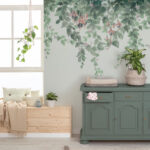 Нежни цветчета и пищна зеленина се спускат плавно отгоре, придавайки усещане за естествена лекота в помещението. Игривите фуксии и петунии в меки розови и кремави нюанси се съчетават прекрасно със свежите зелени листа. Този тапет внася очарованието на разцъфнала градина в дома ви – романтичен, успокояващ и изпълнен с жизненост.