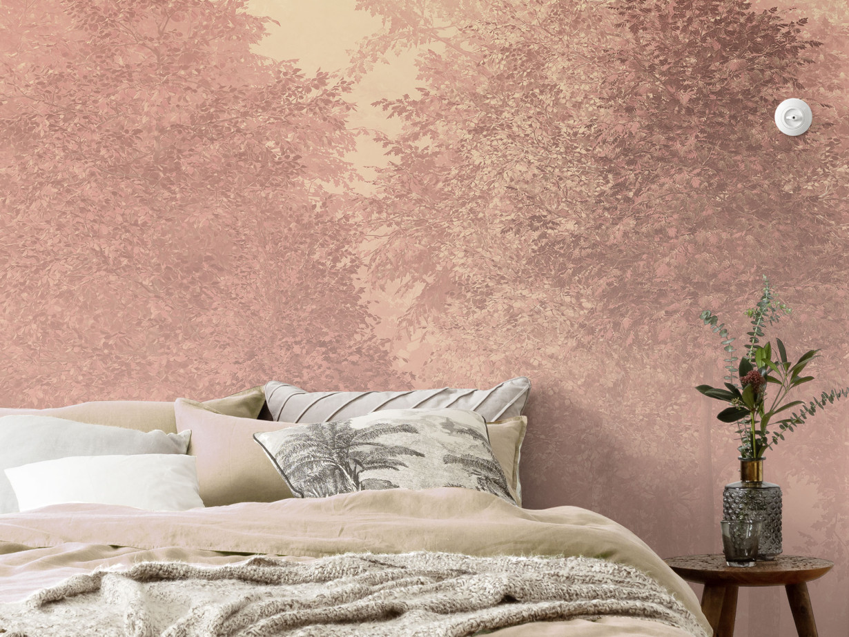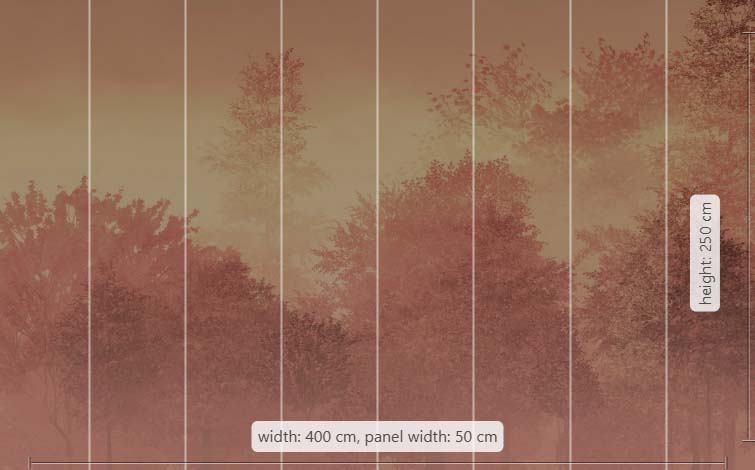 Гората дарява спокойни мисли, приканвайки ви да се насладите на настоящия момент тук и сега. Топлото жълто в този стенопис допълва нежния оранжев оттенък на залязващото слънце. Светещите цветове обгръщат това наистина прекрасно място в природата, до такава степен, че върховете на заобикалящите дървета едва се различават.