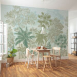 Този стенен дизайн напълно удовлетворява желанието да бъдеш близо до джунглата. Море от палми ще краси белите ти стени, украсявайки ги с нежен пастелен цвят.