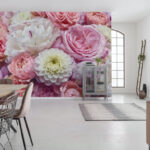 Различни нюанси на зелено – от хладен салвия до нежно маслинено и дълбок евкалиптов тон – се наслояват върху фин виолетово-сив фон, създавайки хармонична цветова дълбочина. Дизайнът напомня ботанични илюстрации, но изглежда модерен и графично изискан. Нежно моделираните листни структури създават интригуваща игра на светлина и сянка, визуално разширяват пространството и внасят усещане за естествена свежест.