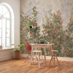 Този фототапет прилепва към стената като картина. Нежни клончета се извиват нагоре, облаците изглеждат като захарен памук, а между тях са пръснати красиви малки цветя — сякаш извадени от приказка.
